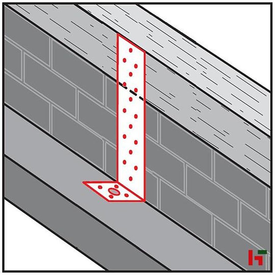 Voorgeperforeerde spijker- of ronde gaten (korte poot: vier spijkergaten en één rond gat en de lange poot: alleen spijkergaten). Als bevestigingsmiddelen moeten ankernagels 4,0 x 40 mm gebruikt worden.