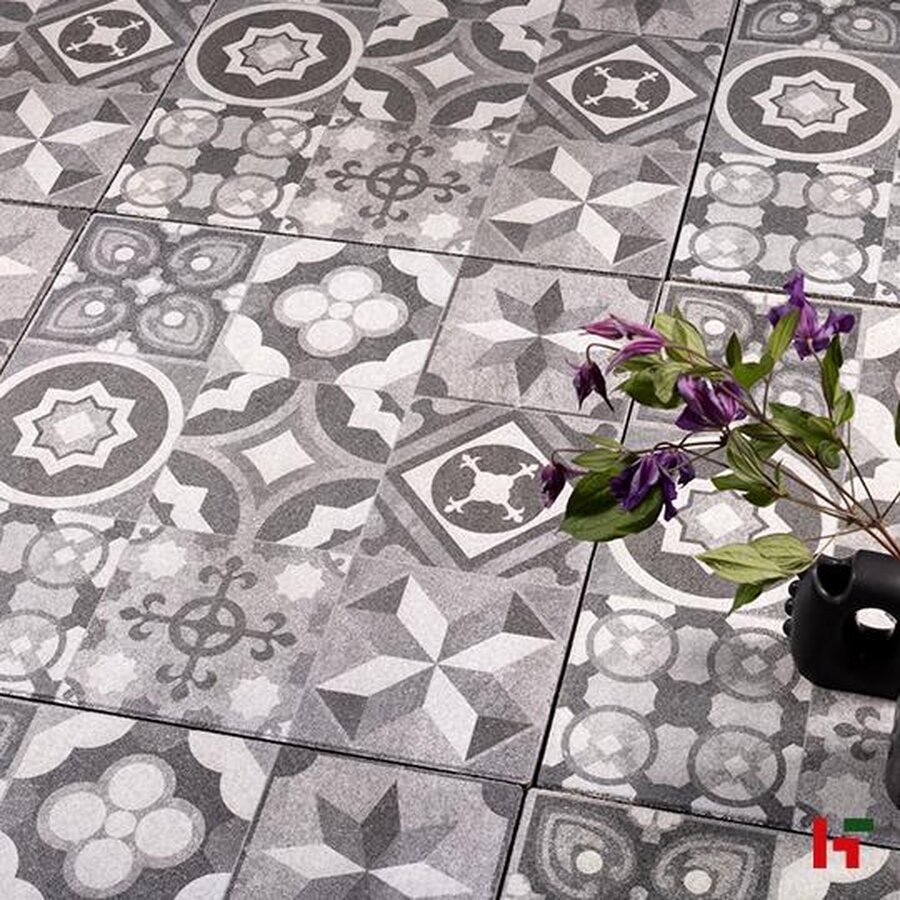 De kleuren Belgian Blue stralen elegantie en luxe uit. In combinatie met design Flower geeft u uw terras een bijzondere twist. Elke afzonderlijke tegel in het Flower design bevat 4 bloemen.