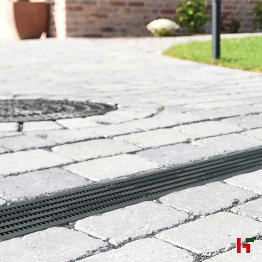 De Euroline bestaat uit een polymeer betonnen goot die samen kan gaan met verschillende roosters als verzinkt staal, RVS, gietijzer & Kunststof. Dit duurzame en robuuste systeem kan i.c.m. een gietijzeren rooster zelfs worden toegepast bij een intensief bereden oprit.