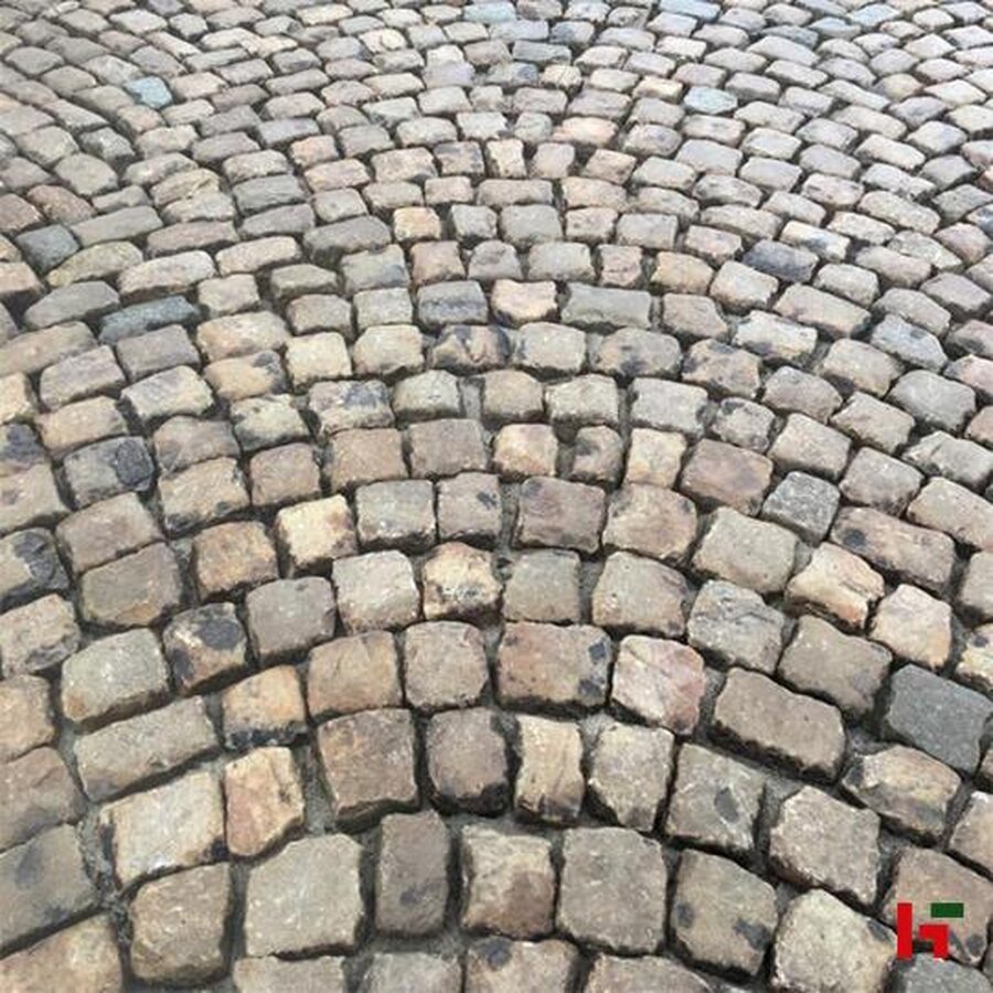 - Authentieke uitstraling: De mix van kasseien in de Vossekoppen Rustieke Mengeling biedt subtiele variaties in kleur en textuur, wat zorgt voor een levendig en natuurlijk patroon in de bestrating met een historisch karakter.