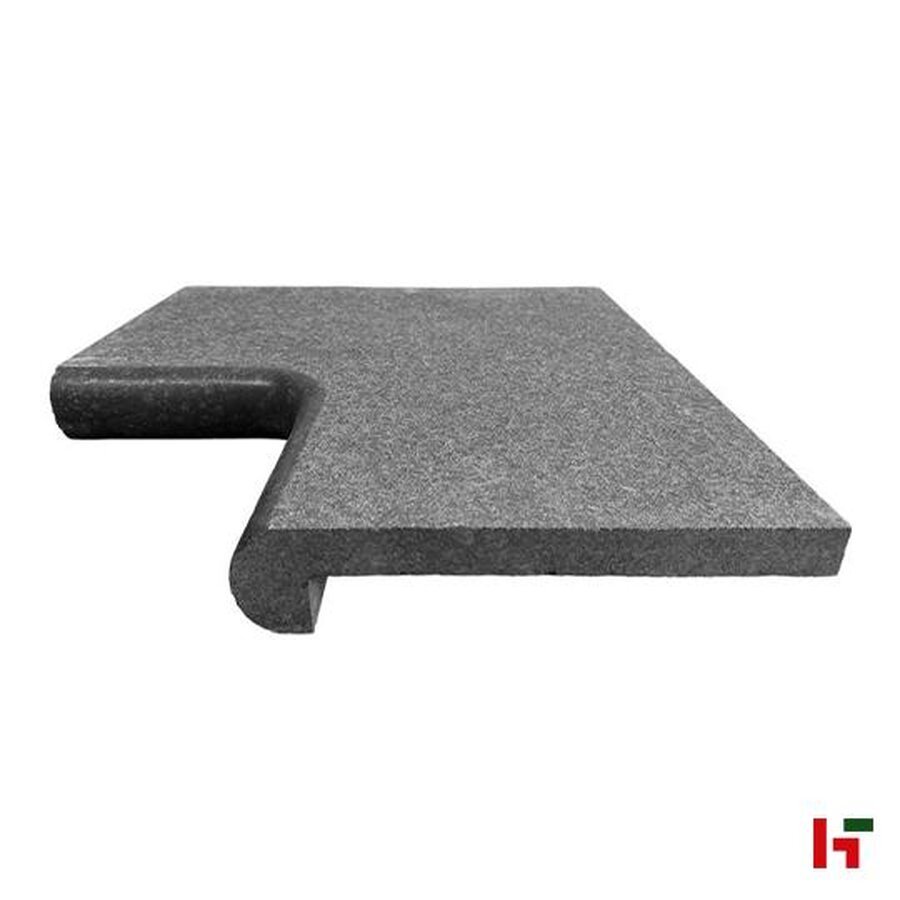 Peperino Dark, Natuursteen Zwembadboord - Graniet Binnenhoek 50 x 50 x 3 / 5 cm Afgerond 180° verzoet G75