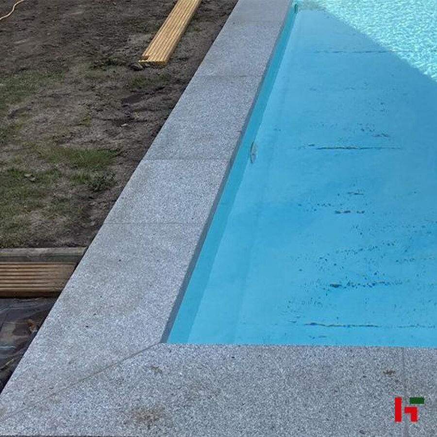 Onze Peperino Dark zwembadboorden in graniet bieden een uitzonderlijke combinatie van duurzaamheid, stijl en comfort. Graniet is de meest gekozen natuursteen voor zwembadranden – en dat is niet zonder reden. De steensoort is extreem slijtvast, kleurvast, vorstbestendig én onderhoudsvriendelijk, en dankzij de gevlamd & geborstelde afwerking zijn deze boordstenen ook nog eens antislip zonder ruw aan te voelen aan de voeten.