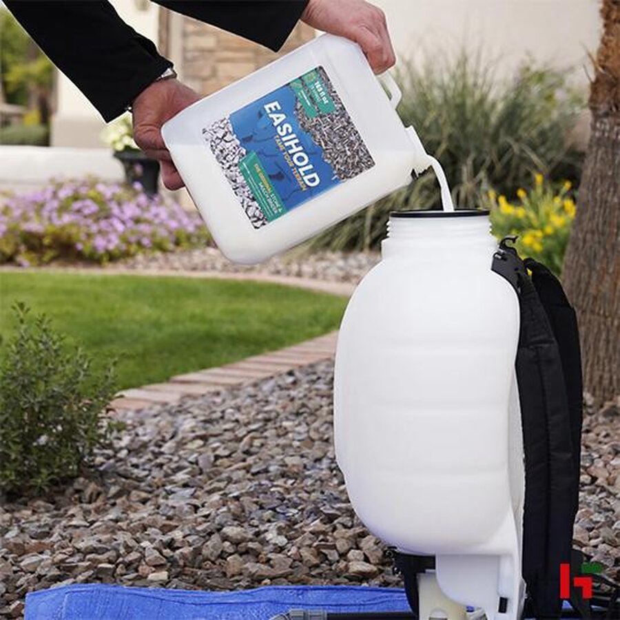 Easihold is perfect om losse steentjes van grindpaden en sieroppervlakken op hun plaats te houden. Hierdoor blijven de steentjes bij elkaar en kunnen deze niet op plekken terecht komen waar het niet hoort, zoals op het gras of de openbare weg. Met Easihold krijgen de steentjes ook meteen een beschermlaag tegen vlekken en verkleuring. Het is een bindmiddel op waterbasis en bevat geen giftige stoffen. Nadat de vloeistof is aangebracht verdampt het water en doet de Easihold vloeistof zijn werk. Let op: Easihold is niet geschikt voor opritten voor auto's.