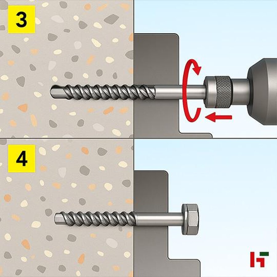 De betonschroef wordt veel gebruikt voor het bevestigen van consoles, profielen, leuningen, houten regels en staalconstructies in beton. Ideaal voor zowel renovatie- als nieuwbouwprojecten.