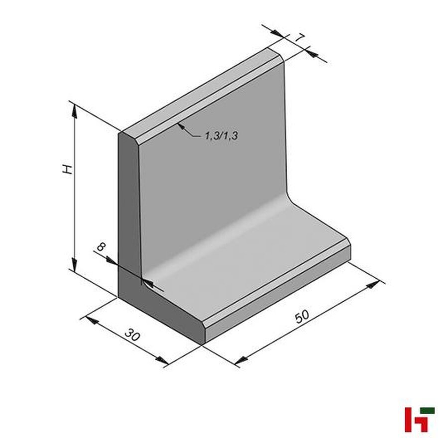 Een L-element is een muurelement met voet. Hierdoor steekt het element extra stabiel in de grond. Het L-element is handig om niveauverschillen op te vangen en als grondkering. De L-elementen zijn verkrijgbaar in rechte vorm en als hoek.