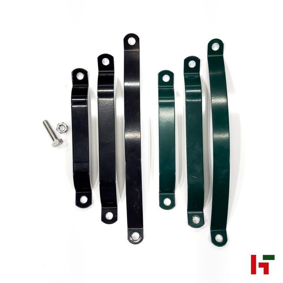 Deze beugel met bijhorende bout en moer is een essentieel onderdeel bij het plaatsen van een draadafsluiting. Ze wordt voornamelijk gebruikt om het eindstuk van de bovenbuis stevig aan een ronde paal te bevestigen. Daarnaast kan de beugel ook dienstdoen voor andere toepassingen zoals het vastzetten van een spandraadhouder op een paal.